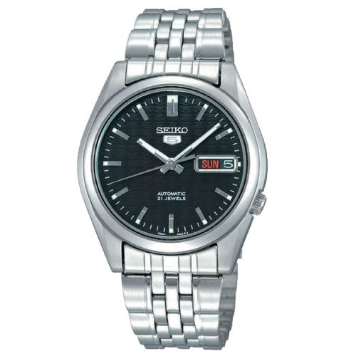 Reloj Seiko 5 tipo Analogo, con estilo Clasico resistente al agua 30 m con movimiento Automatico, pulso en Acero Inoxidable con cristal Hardlex y color de pulso Silver.