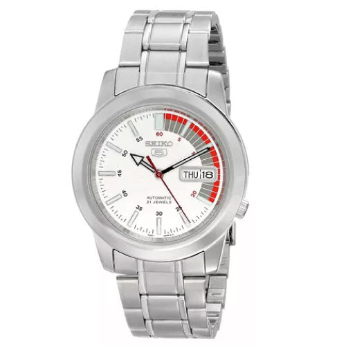 El reloj Seiko SNKK25 para hombre con correa automática de acero inoxidable y esfera blanca es completamente nuevo y viene en una caja de regalo original de Seiko y está respaldado por una garantía limitada de 06 meses.